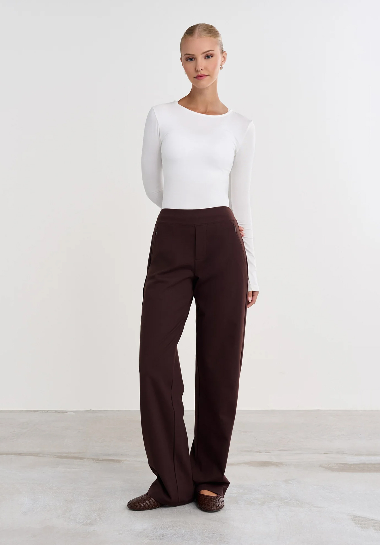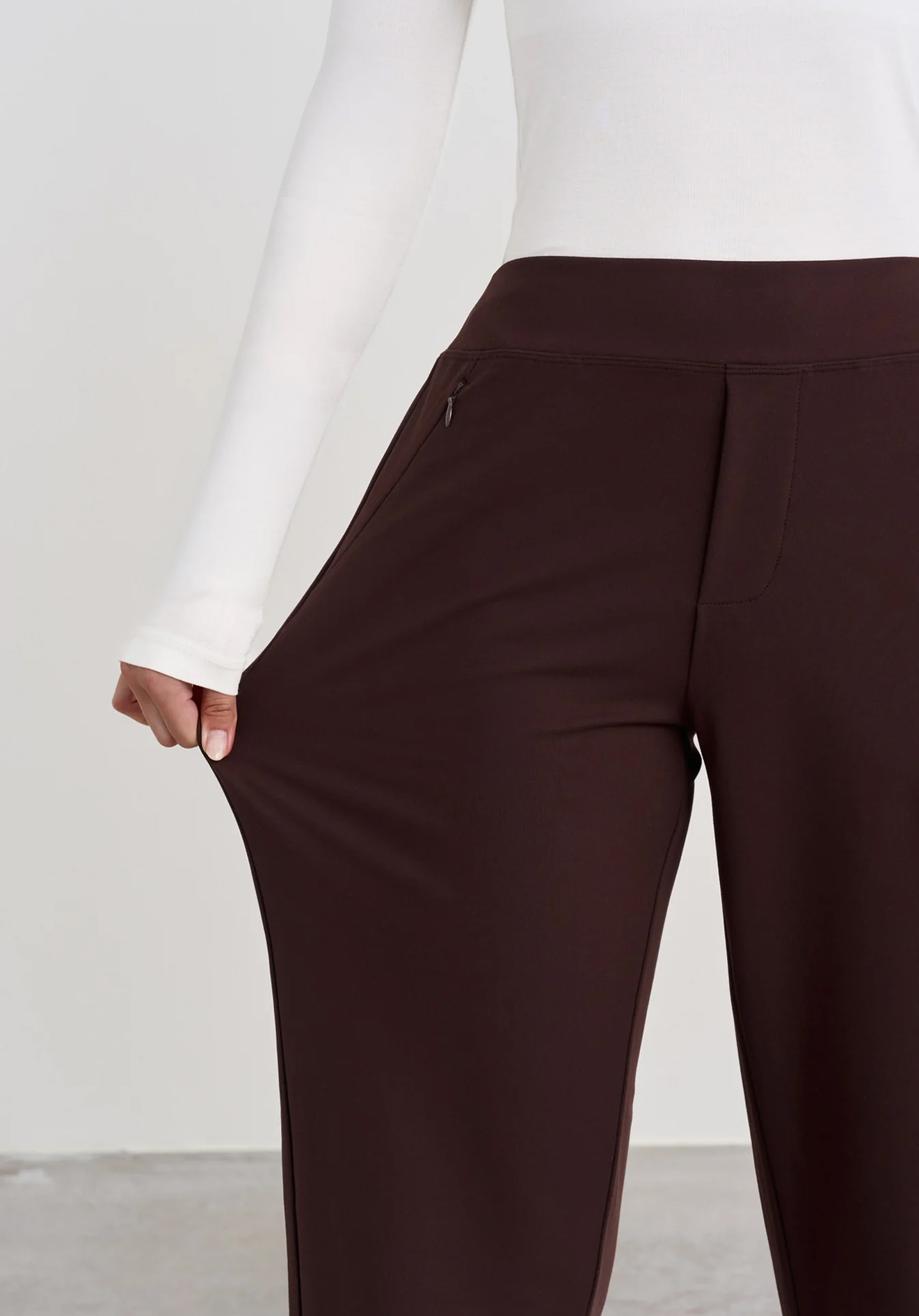 Tailored Relaxed Pants er bukserne, der ser velklædte ud, men føles lige så behagelige som leggings. Det bløde materiale med 4-vejsstretch og den elastiske talje giver komfort hele dagen. Den afslappede, lige pasform gør dem nemme at bruge til alt – fra kontor og rejse til café og hverdag. Diskrete lynlåslommer holder dine vigtigste ting sikkert på plads. Fås i tre længder for den perfekte pasform.