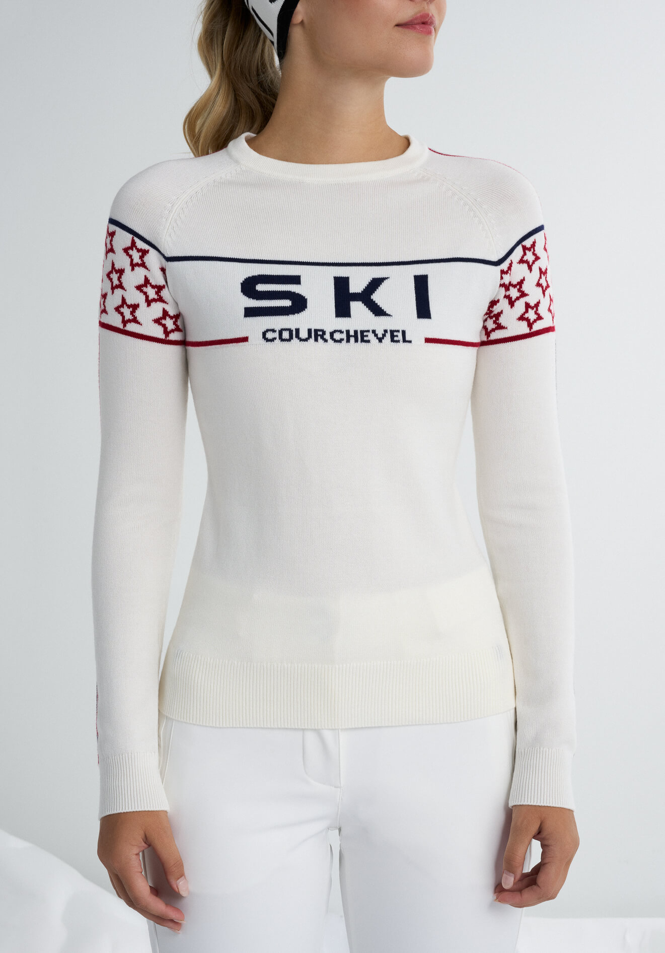 Sweateren har opsmøg omkring taljen og en behagelig rund halsudskæring. Skal du til Åre eller Courchevel? Voilà!