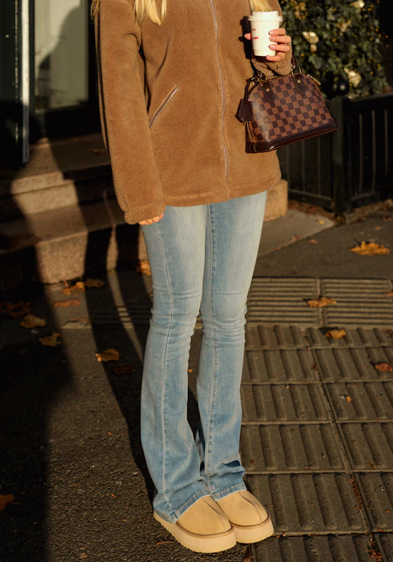 Flare Jeans er designet til at give dig det klassiske denimlook – med en uventet høj komfort. Den specialudviklede, strækbare denimblanding giver en blød og fleksibel følelse, samtidig med at stoffet bevarer sin struktur og sit udtryk. Resultatet er jeans, der bevæger sig med kroppen uden at føles stive. Flare pasform kombineret med en høj talje skaber en flatterende og balanceret silhuet med en let udsvajet form, der forlænger benene. Klassisk 5-lommedesign med bæltestropper samt lynlås- og knaplukning.