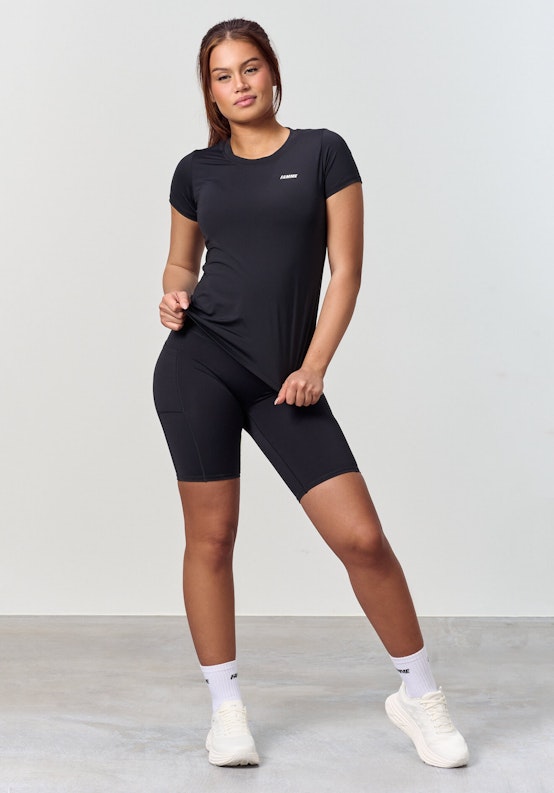 Essential t-shirten er en funktionel t-shirt, der fungerer til alle former for træning. Elastisk stof transporterer fugt væk fra huden, så du holder dig tør og afkølet. Essential-t-shirten er let og behagelig og kan matches med alle dine yndlingstights og -shorts.