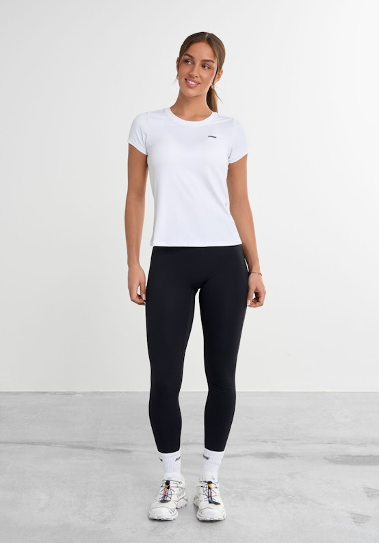 Essential t-shirten er en funktionel t-shirt, der fungerer til alle former for træning. Elastisk stof transporterer fugt væk fra huden, så du holder dig tør og afkølet. Essential-t-shirten er let og behagelig og kan matches med alle dine yndlingstights og -shorts.