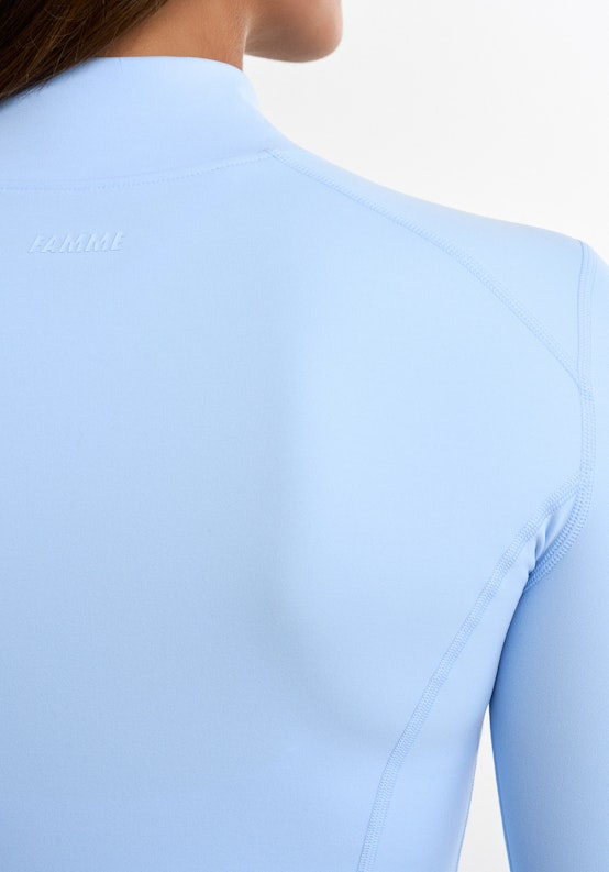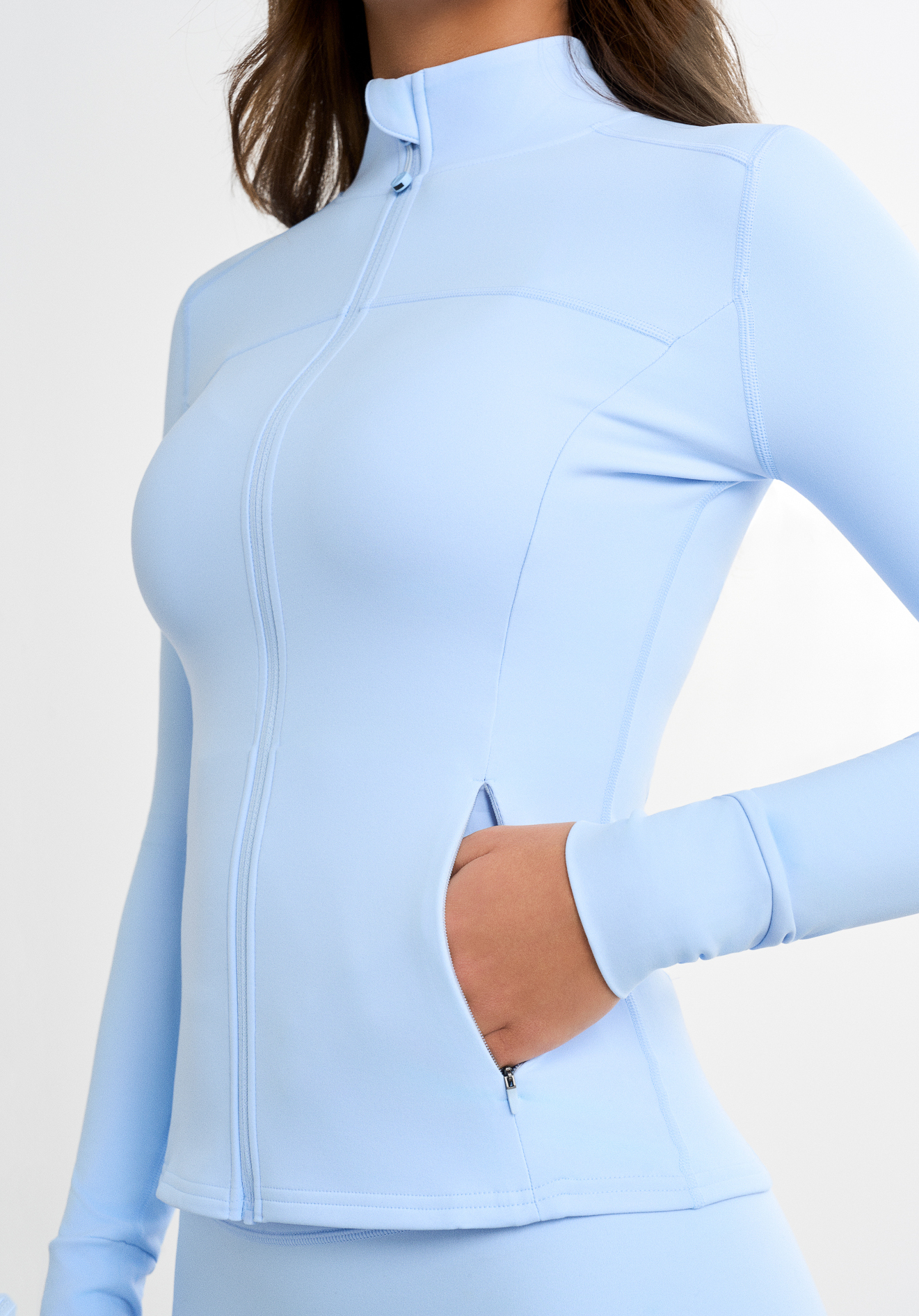 Stilfuld jakke med perfekt pasform. Jakken er lavet i Softy-stoffet, som alle elsker og er syet med en unik syteknik, som gør jakken endnu mere behgelig og smuk at se på. Stoffet er blødt, elastisk og ånder effektivt. Jakken er i fuld længde, har lynlås foran og to lynlåslommer.