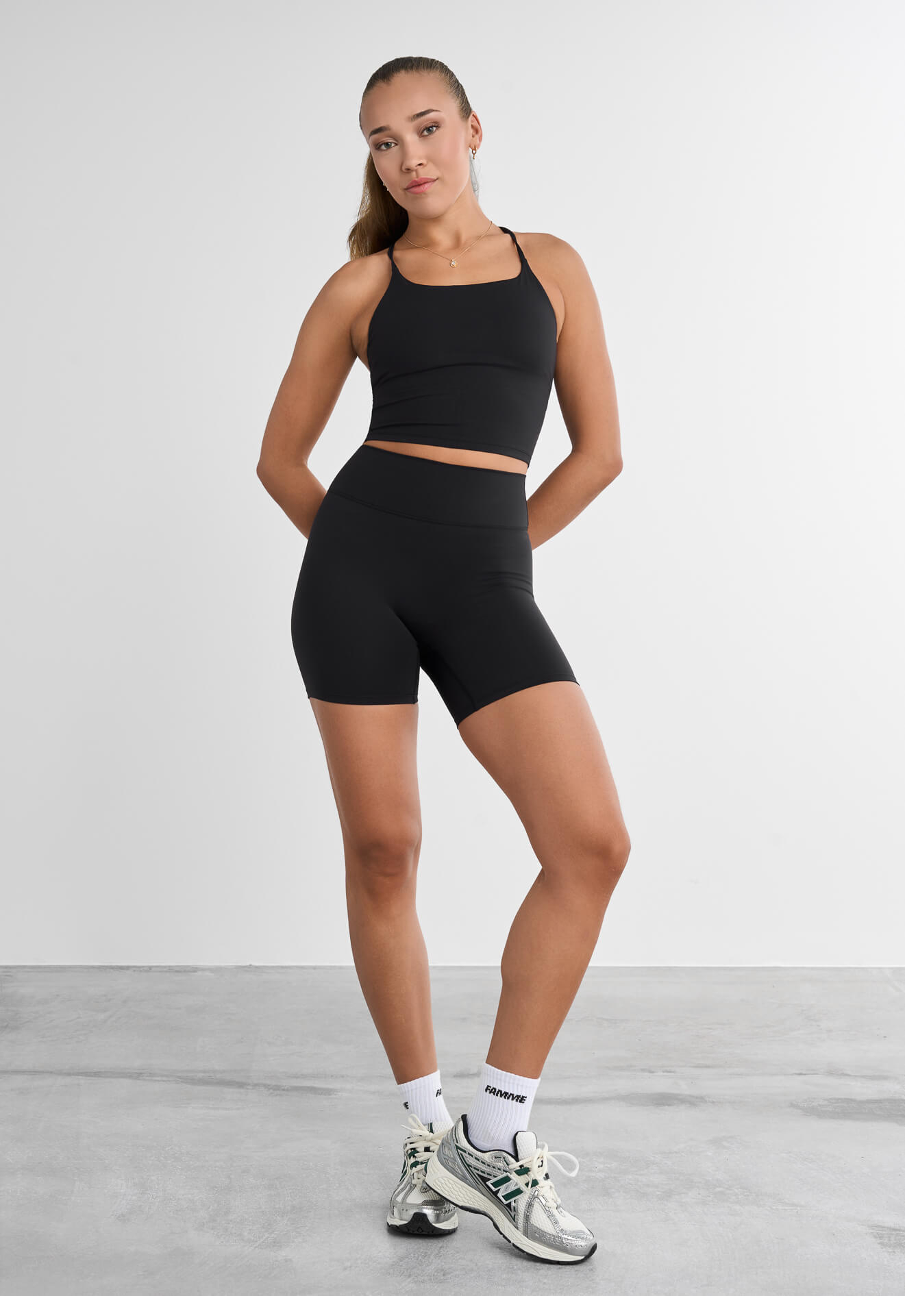 Stilfuldt stof, ingen søm foran, minimalistiske syninger og tone-i-tone-logo. Stoffet er blødt, elastisk og transporterer hurtigt fugt væk fra huden. De højtaljede shorts er velegnede til løb, styrketræning og hverdagsbrug. Signature Shorts er gode at kombinere med hverdagstøj for et trendy Athleisure-look.