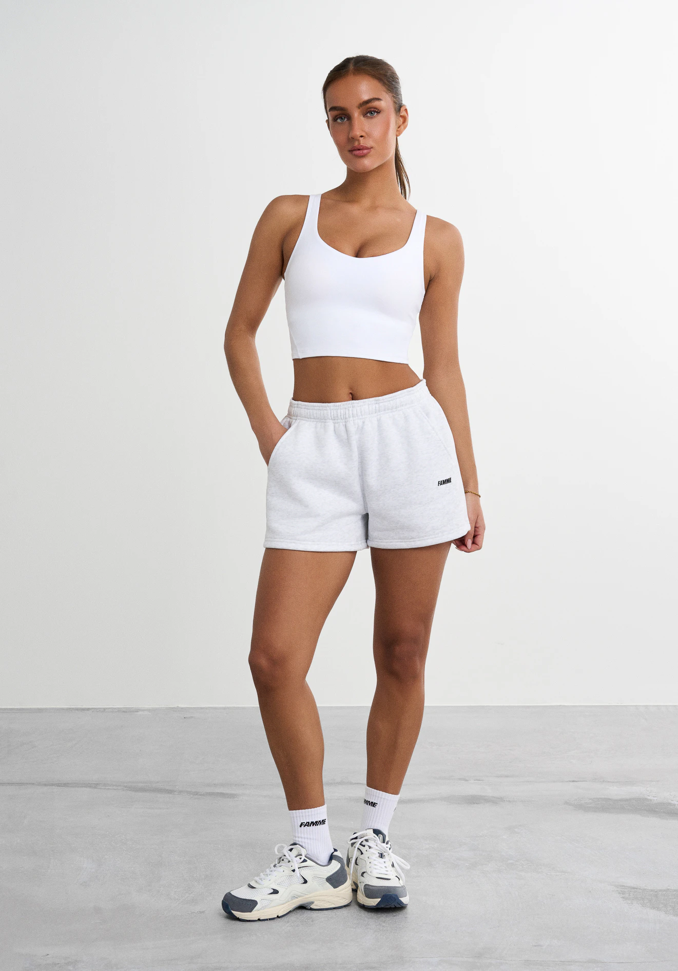 Essential Sweatshorts er stilrene og komfortable shorts med en afslappet pasform og moderne silhuet. Det bløde materiale med børstet inderside føles behageligt mod huden og giver høj komfort hele dagen. Den løse pasform gør dem perfekte til både træning og hverdag.