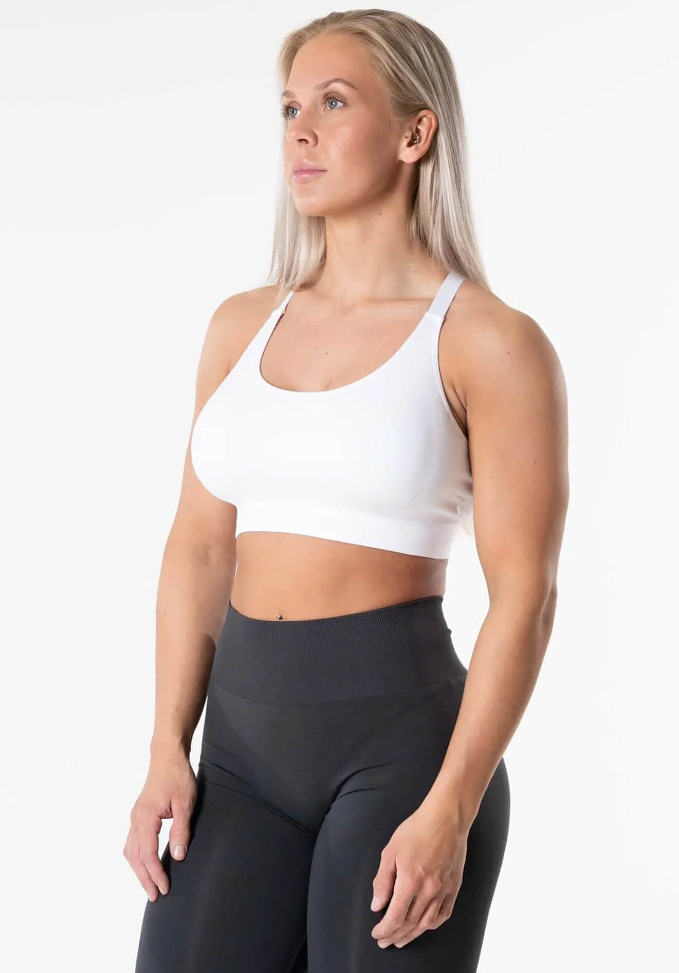 Prime Scrunch Top er lavet af et smidigt materiale, der giver medium støtte. De bløde skulderstropper og det bløde stof giver en hyggelig fornemmelse, så du kan føle dig både stilfuld og komfortabel under træningen. Den krydsede ryg giver dig både støtte og bevægelsesfrihed, hvilket gør den ideel til alle former for træning.