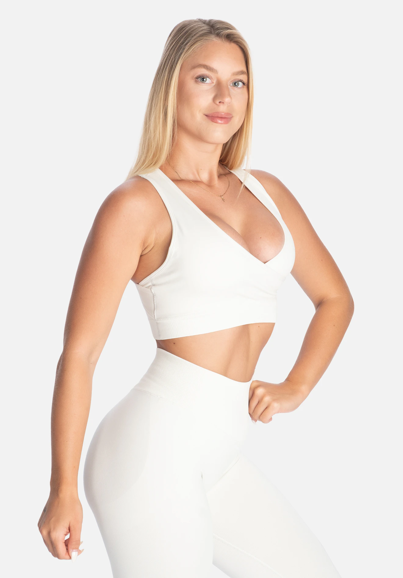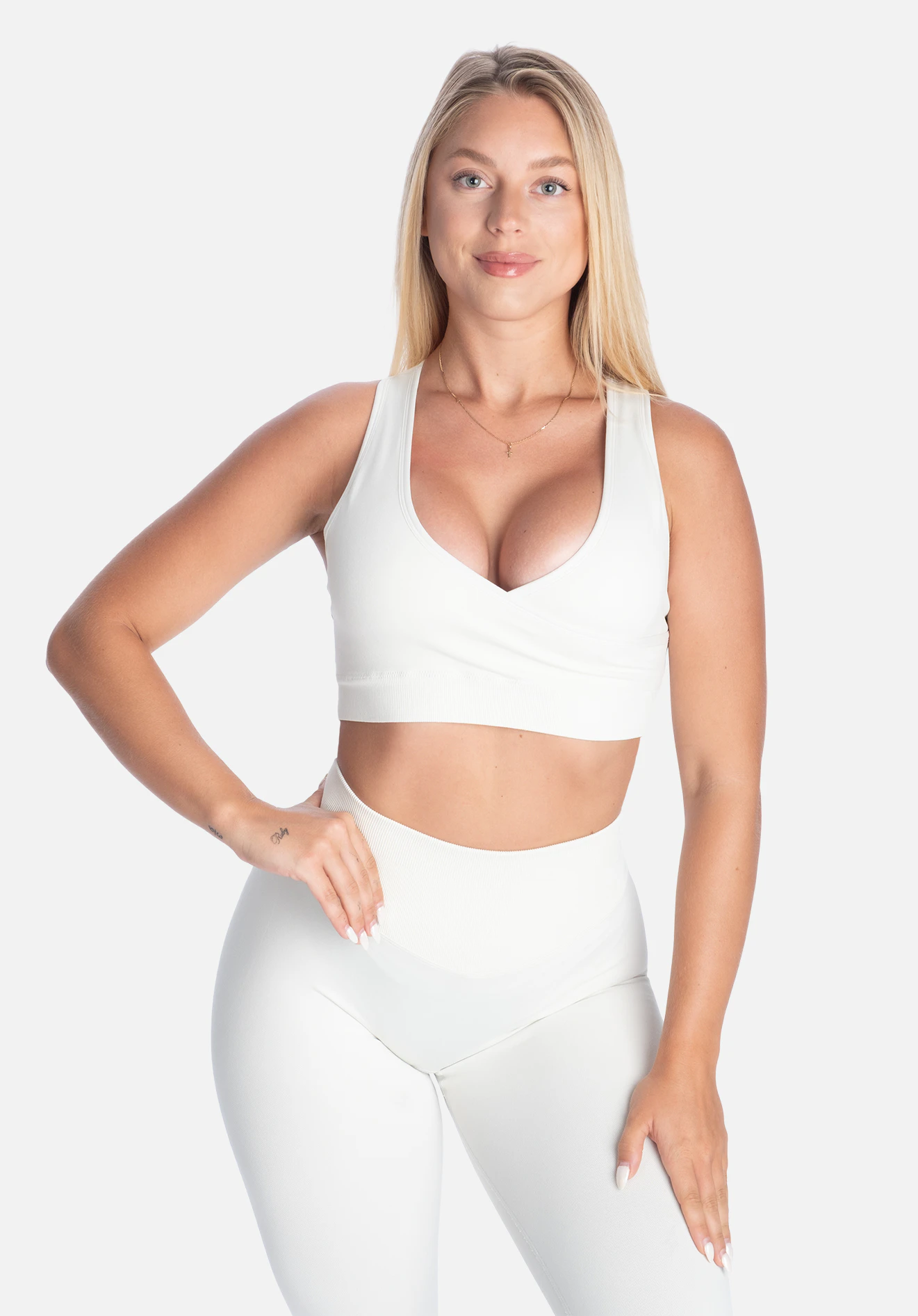 Den wrap-inspirerede front skaber en flatterende silhuet, mens det strækbare stof sikrer fuld bevægelsesfrihed. Et oplagt valg for dig, der ønsker en sports-bh, der både performer og ser godt ud – både i fitnesscenteret og på farten.