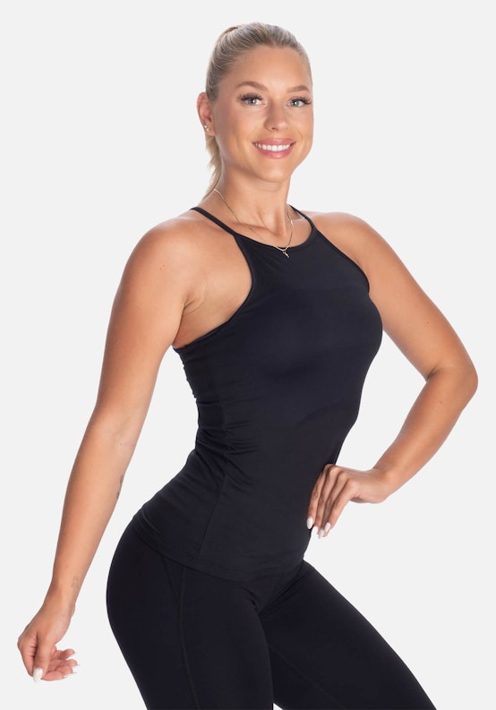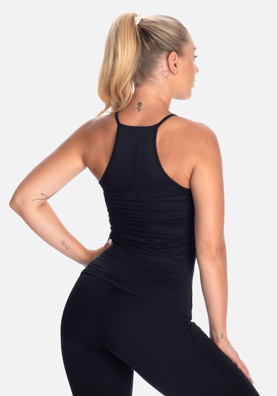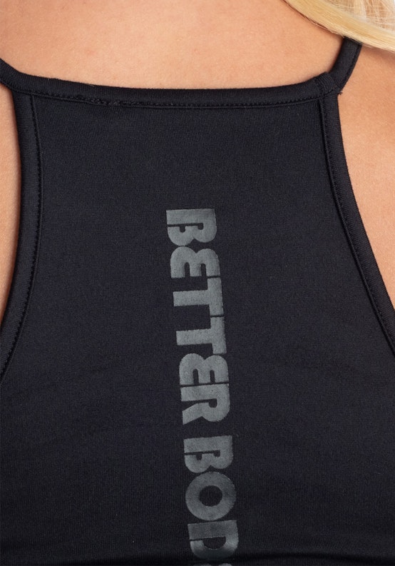 Med sin halterneck-snit fremhæver denne top dine skuldre og ryg, samtidig med at den giver dig fuld bevægelsesfrihed. Det elegante design suppleres af et diskret Better Bodies-logo på ryggen, der forener funktion og design.
