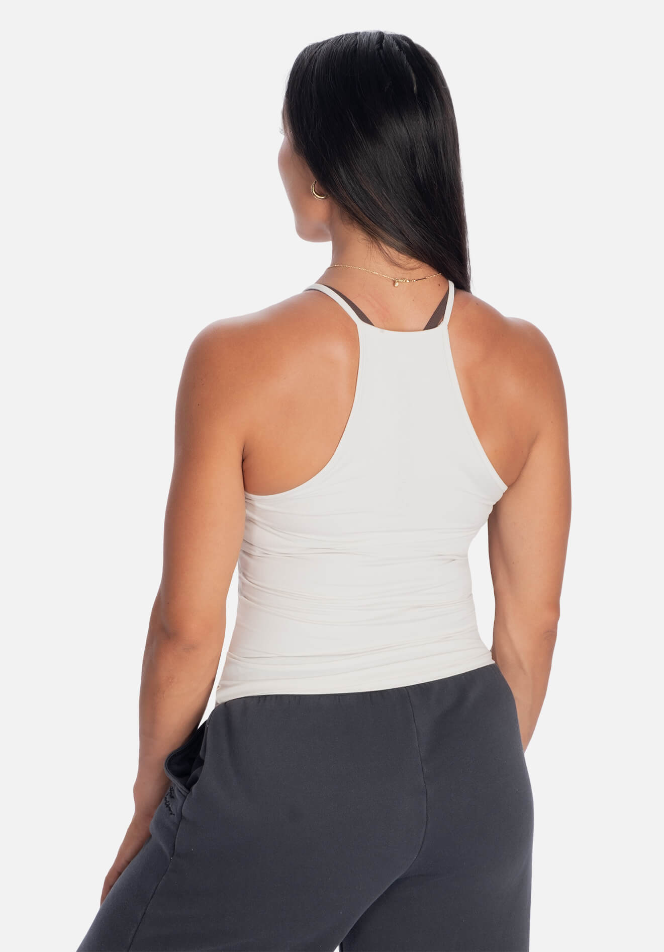 Med sin halterneck-snit fremhæver denne top dine skuldre og ryg, samtidig med at den giver dig fuld bevægelsesfrihed. Det elegante design suppleres af et diskret Better Bodies-logo på ryggen, der forener funktion og design.